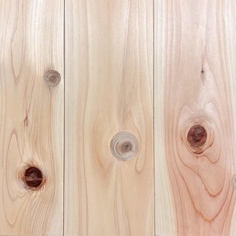 フローリング・羽目板ともに、節あり(丸節・小節)から特上小・無節まで対応しており、DIYから工務店様の現場まで、用途やご要望に応じてお選びいただけます。